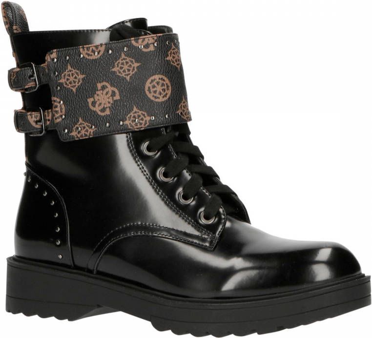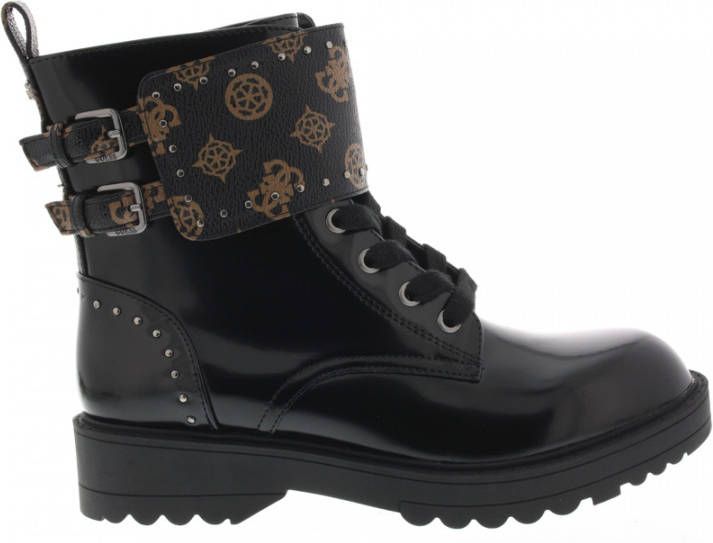 Guess dames bikerboot artikel Flwanfal in het zwart leer. zwart Flwanfal Brown Ocra.