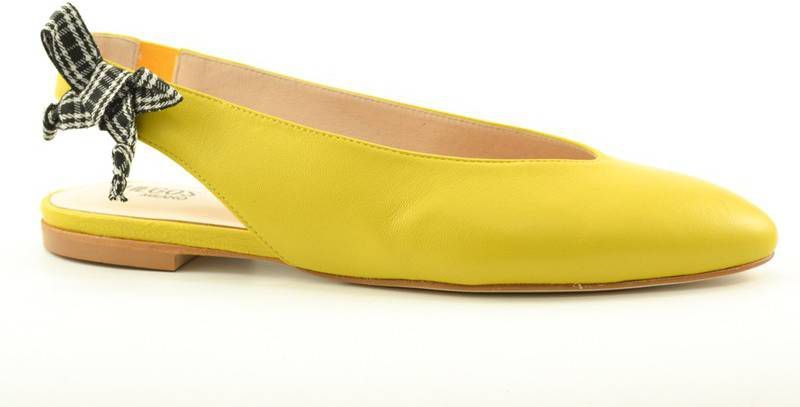 Vrolijke ballerina met een open hiel, spits leestje en strik.