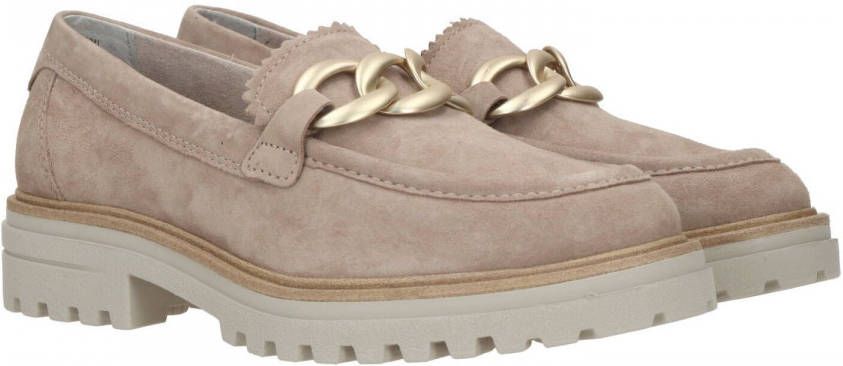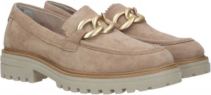 Met deze taupe Tamaris instappers zit je altijd goed. Dit model heeft een stoere profielzool en is voorzien van een goudkleurige ketting die over de wreef heenloopt. De schoenen zijn volledig gemaakt van leer. Dat houdt in dat naast het bovenwerk ook de voering en de comfortabele binnenzool van dit materiaal gemaakt zijn. Door het instapmodel trek je deze schoenen in een mum van tijd aan en uit. Het voetbed is voorzien van de Touch It technologie, waardoor het voetbed zicht aanpast aan jouw voeten. Dit zorgt voor optimaal draagcomfort. De rubberen zool heeft een hoogte van 4 centimeter.